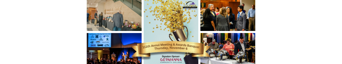 One of our largest and most prestigious events, the Annual Meeting and Awards Banquet purpose is to present the year in review and what our goals will be for the following year. During this event, we celebrate the accomplishments of the community at our Chamber Banquet once every year. Our community gathers for an evening of fun, food, and networking. Guests are treated to a meaningful ambiance, a fine meal, and engaging entertainment. We will be recognizing the year's key achievements and presenting Culpeper business and individual awards, as well as hosting a silent auction.